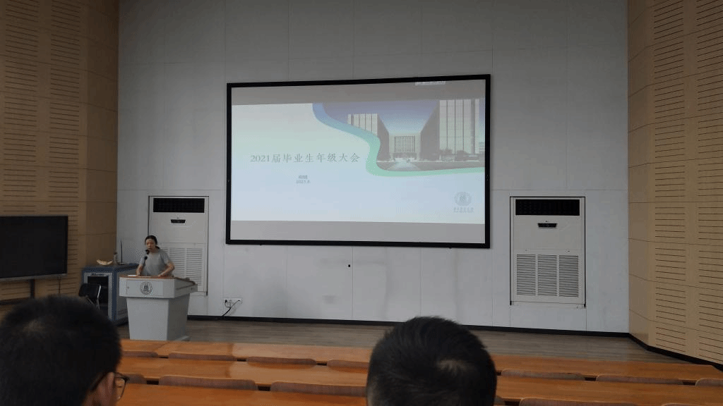 “我为师生办实事”2021届毕业生年级大会在三教S1报告厅举行,辅导员郑越、周熙、王凤武老师参加此次会议,会议由郑越老师主持。