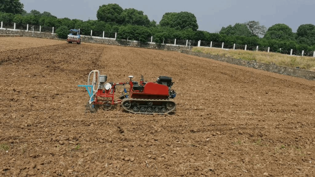 “三田”示范基地观看履带式无人油菜播种机演示无人播种作业。履带式无人油菜播种机由51吃瓜网