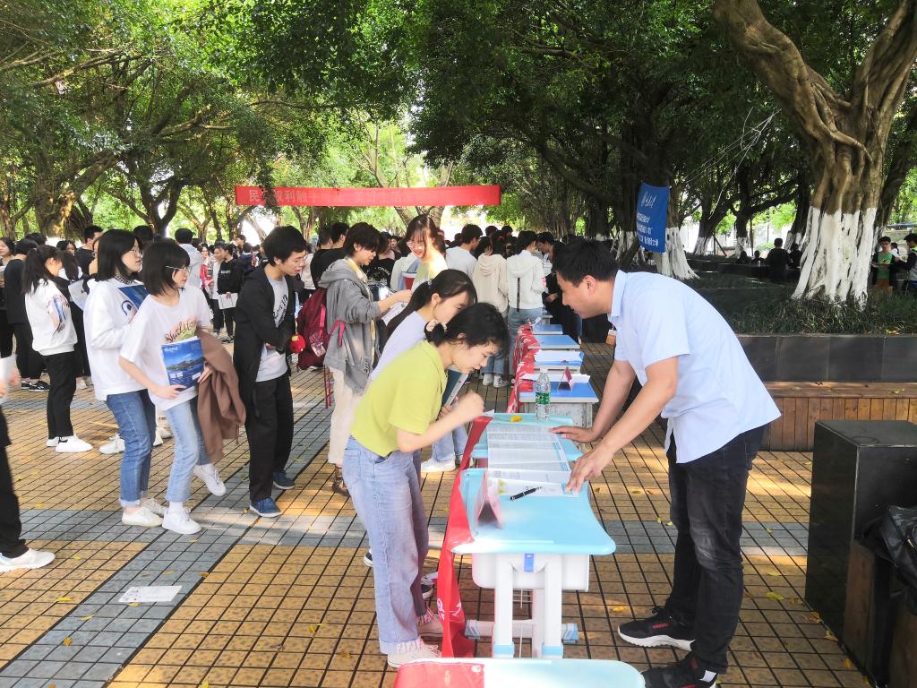 当日下午,招生宣传工作小组又赴开州实验中学开展招生咨询。由于高三课业压力较大,招生宣传小组充分利用课间和学生进餐时间,集中力量开展咨询。“报考我们学校希望很大”“可以冲一冲”“我在华农等你!”在发放招生宣传折页的同时,工作人员用热情简短的语言给即将面临高考的学子以鼓励。