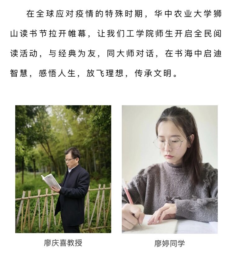 教师诵读的身影。疫情期间,院长廖庆喜教授带领学院教工,手捧季羡林的《做人与处世》、朱自清的《匆匆》等经典作品,开启了师生共品经典活动。在老师们热情的感召下,学子们居家隔离期间纷纷录制了诵读视频进行接龙。在应对疫情的特殊时期,阅读无疑是广大师生的一剂精神“良药”,使广大师生的情感得以共鸣,精神得以慰藉。廖庆喜表示,今年,我们将继续开展师生阅读活动,希望大家与经典为友,同大师对话,在书海中启迪智慧,感悟人生,放飞理想,传承文明。