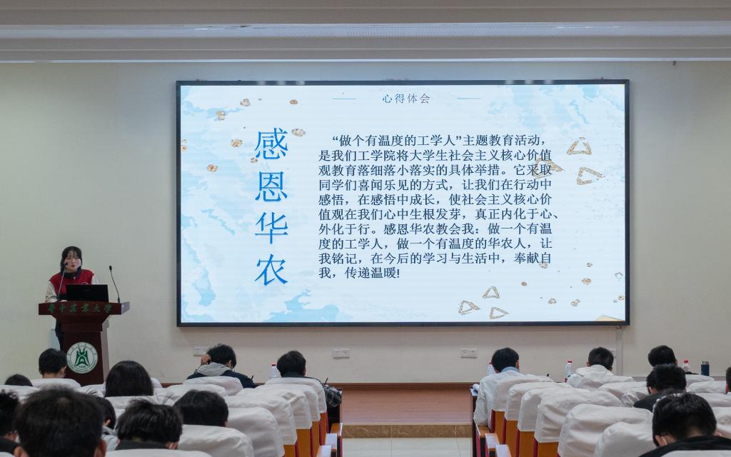 党委副书记瞿明丽表示,学院始终将大学生感恩教育、责任感和担当意识的培育作为大学生的必修课。“做一个有温度的工学人”主题教育活动,是学院将大学生社会主义核心价值观落细落小落实的具体举措。在寒假期间,以学生喜闻乐见的方式开展教育活动,让学生在行动中感悟,在感悟中成长,使社会主义核心价值观在青年学生中生根发芽,真正内化于心、外化于行。