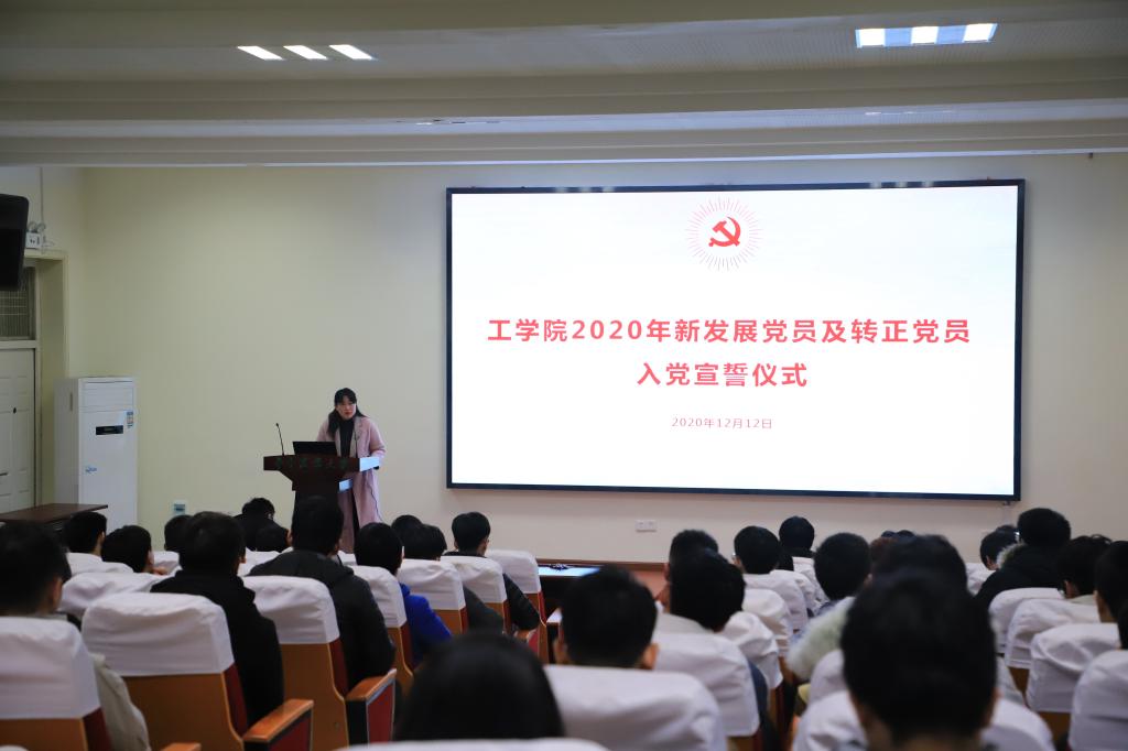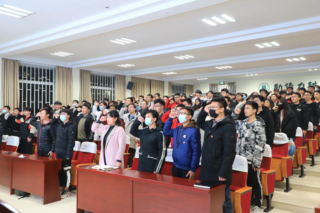 在工程楼A111举行2020年新发展党员及转正党员入党宣誓仪式。宣誓仪式结束后,学院党委副书记瞿明丽为党员同志们上党课。本科生、研究生新发展党员及转正党员近200人参加活动。