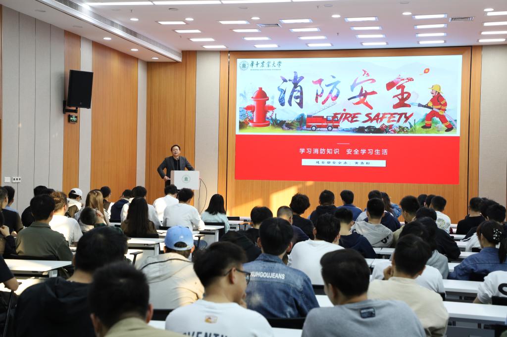 黄青松老师从“校园风险情况介绍”、“处理学校风险时的几点教训”、“常见火灾设备介绍”、“初期火灾处理”、“火场基本逃生知识”等五个方面为现场师生进行了消防安全知识培训,用惨痛的警示案例和现场视频直观地向师生展示实验室安全运行管理的极端重要性和科学的应急处理措施。