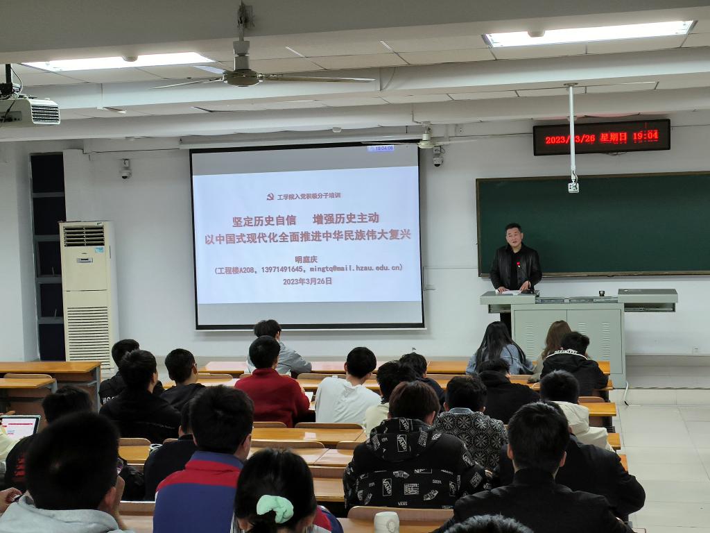 党委书记明庭庆给189名本科、研究生入党积极分子带来了“坚定历史自信,增强历史主动,以中国式现代化推进中华民族伟大复兴”的主题宣讲。