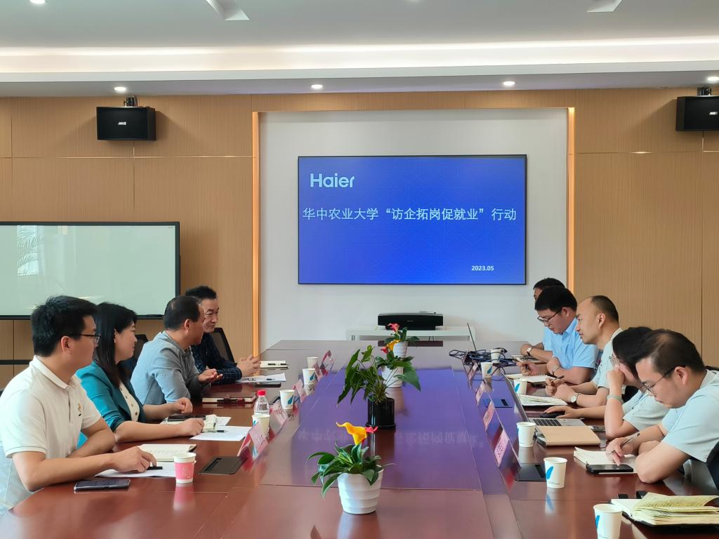在武汉海尔电冰柜有限公司,副总经理刘永哲陪同王建鸿一行参观了公司园区及电冰柜制造车间。座谈会上,海尔校企对接负责人宋立民就企业发展状况及校园招聘项目进行了介绍,明庭庆介绍了学校的学科建设及学院人才培养情况。双方围绕“校企双方联合培养,提高人才培养质量”项目进行了深入探讨。自动化专业2019届校友杨光远向母校老师汇报了4年来的工作历程和成长收获,并由衷感谢母校的培养和关心,表示“勤读力耕,立己达人”的校训让他铭记一生,并一直激励他踏实苦干,不断向前。