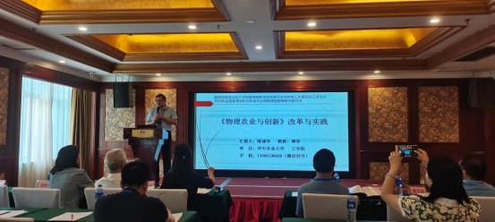 陈建军教授受邀在大会上作题为《物理农业与创新》改革与实践的报告,从课程背景、课程建设和成效三个层次,详细介绍了我校在农业问题导向下促进物理与农业交叉融合发展的尝试和创新,为当前农林类院校物理课程普遍存在的学生获得感不够高、与专业融合不够紧密等痛点和难点提供了行之有效的解决方案,得到了与会专家和代表的共鸣和好评。