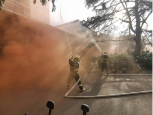 下午五点,“火情”发生,警报响起,疏散演练拉开帷幕,在现场指挥组的指挥调度下,各楼层疏散小组迅速行动,到达楼梯口引导师生迅速下楼并撤离至各楼宇紧急疏散集结点,工作人员进行人数清点,并记录紧急疏散用时,新工科楼用时2分50秒,工程楼用时2分58秒,充分体现了师生消防安全意识和自防自救能力。学校建安部消防人员接警后火速赶赴现场,紧张有序地开展灭火演习,确定着火点、接驳铺设消防水管、救援被困人员…一气呵成,“火情“被及时扑灭。