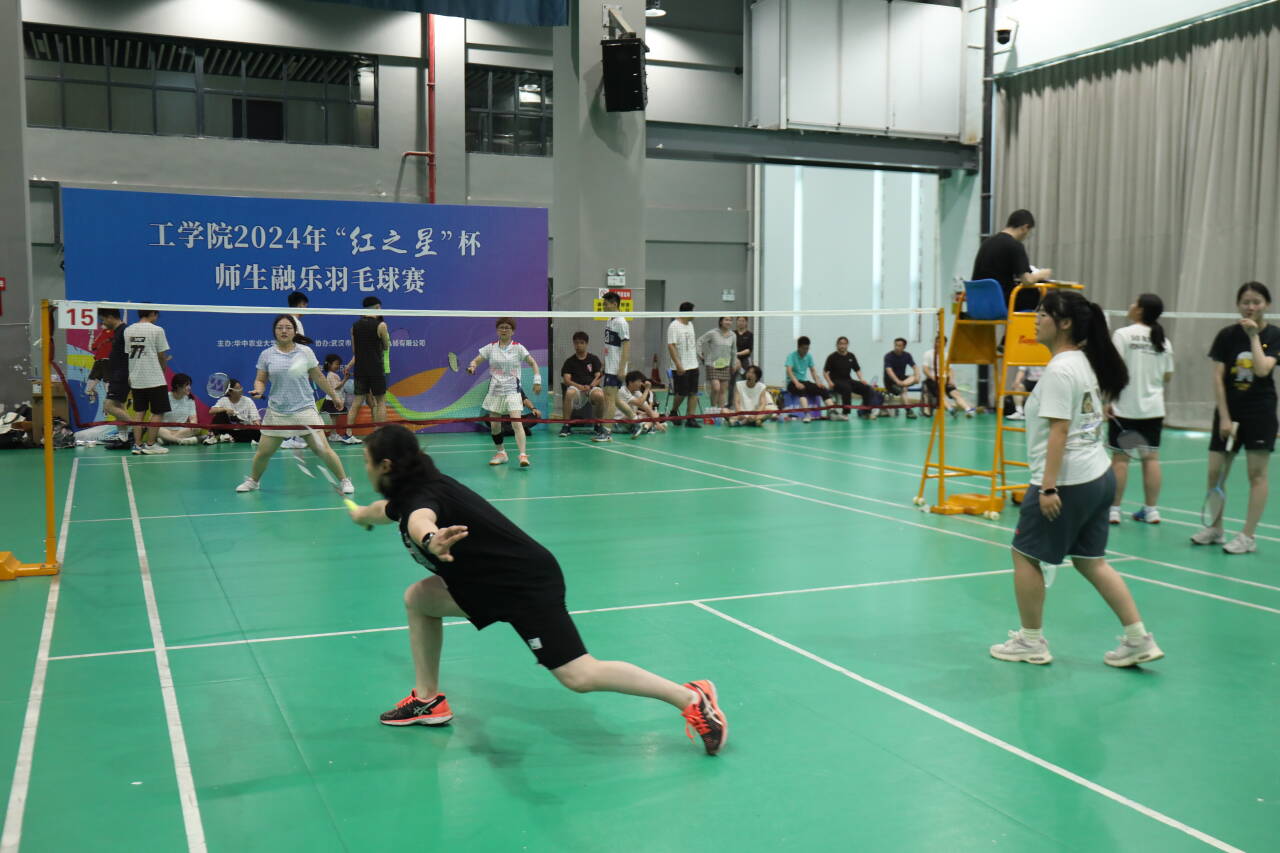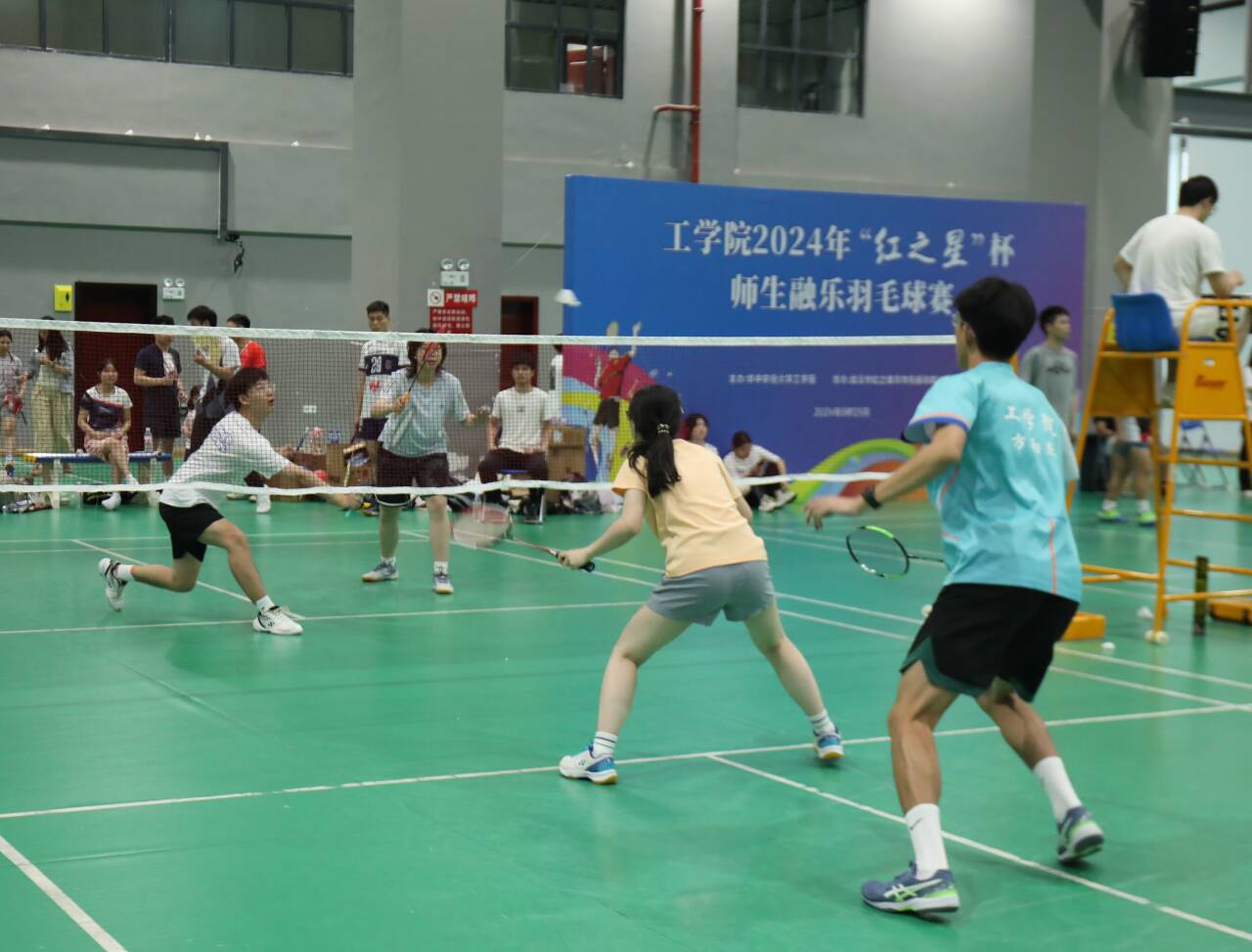 2024年“红之星”杯师生融乐羽毛球赛在东体育馆隆重举行。本次比赛以学院的八个科研团队为参赛单位,以混双1、男双、混双2、女双、男单等五个项目进行团队比赛,混双1、男双、女双三个项目要求师生组队比赛。来自八个团队的近200名师生齐聚一堂,在球场上享受运动乐趣,增进师生交流。