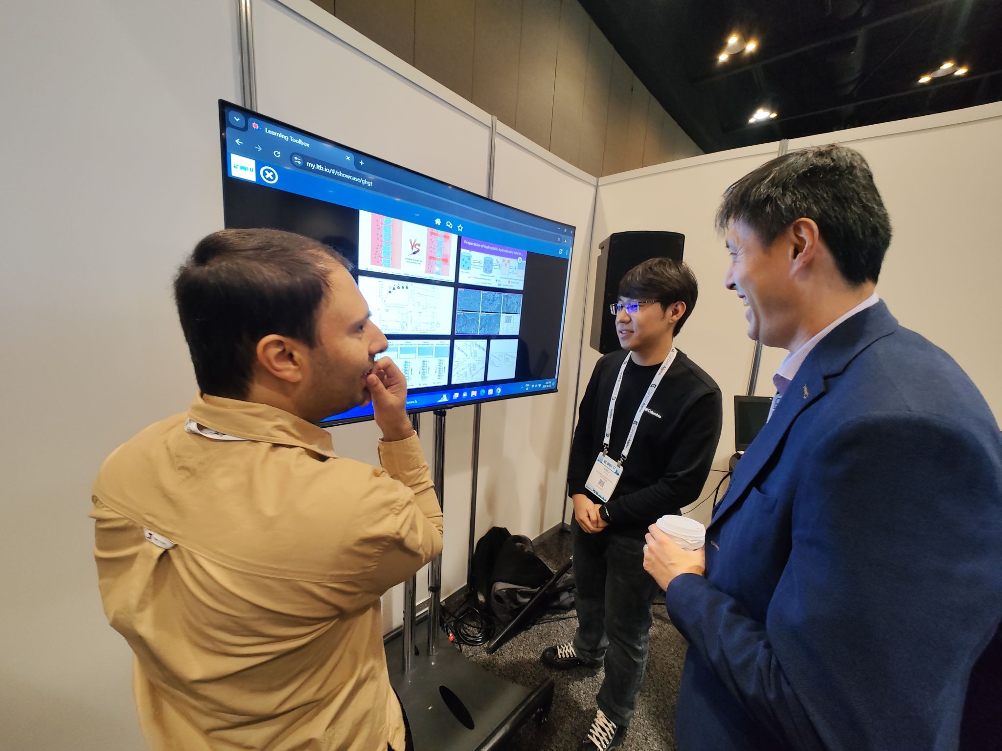 ▲在晏水平教授鼓励下,博士研究生王恩宇与相关领域国际学者交流(受访者 供图)