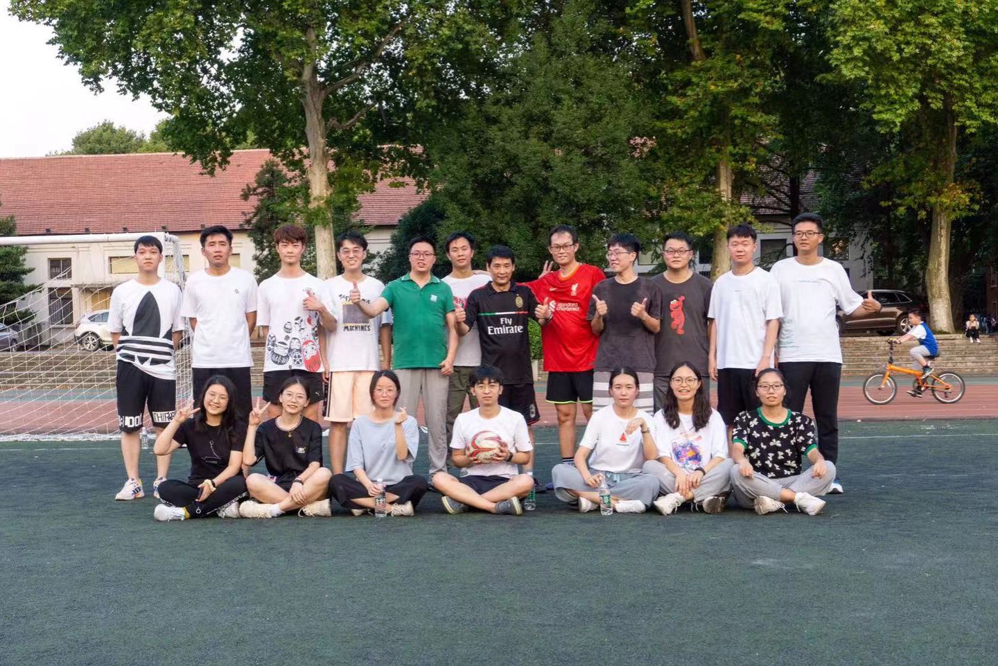 ▲晏水平教授课题组师生足球友谊赛后的合影(受访者 供图)
