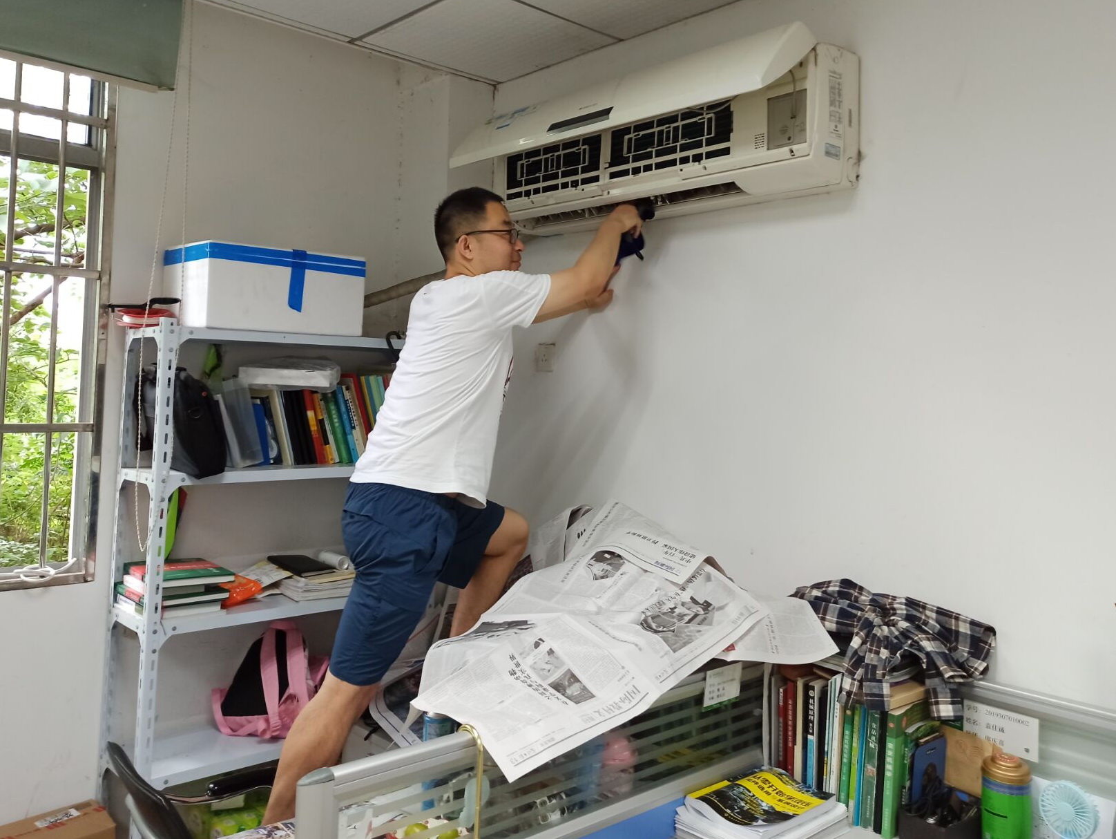 即将入职的准博士后王磊同志在活动通知发出后第一个报名并行动,清洗了工作室和导师办公室的空调,他谈到:“平时能为老师同学服务的机会挺少的,在博士毕业前夕,能有这样一个机会为老师和同学们做点事情,我非常开心,以后到了工作岗位,要更加主动担当,为群众学生做实事。”