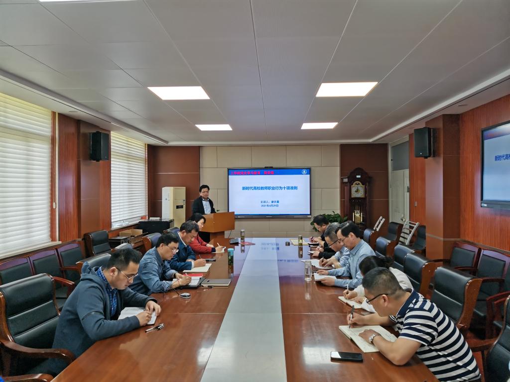 在工程楼A201会议室举行党史学习教育活动,院长廖庆喜教授讲授了《新时代高校教师职业行为十项准则》专题党课。学院领导班子成员、教工党支部书记、教师代表等参加此次学习。