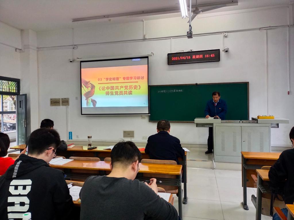 “学史明理”专题学习研讨的第三部分,由宗望远、杨扬、卜祥利、王宝丽等9位师生党员共同诵读《论中国共产党历史》各篇章。宗望远同志表示,在建党一百周年来临之际,我们只有认真学习党史,才能够更加自信、更好地将以往的经验用于未来的发展之中。正如习总书记在党史学习教育动员大会上指出,回望过往的奋斗路,眺望前方的奋进路,必须把党的历史学习好、总结好,把党的成功经验传承好、发扬好。认真学习党史,才能在历史中汲取精神力量,为实现“中国梦”注入无限生机和活力。