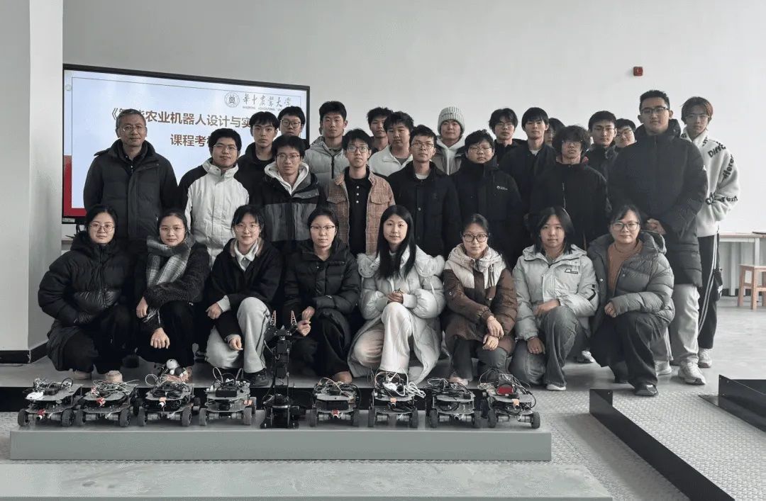 《智能农业机器人设计与实践》是一门典型的新工科与新农科深度融合的课程。它将机械设计、嵌入式开发、自动控制、传感器技术及图像处理等多个领域的知识融为一体,打破了传统学科界限。在5位专业教师的带领下,同学们以3-4人组成团队自主选题,亲历智能农业机器人从概念到实物的完整创造过程。