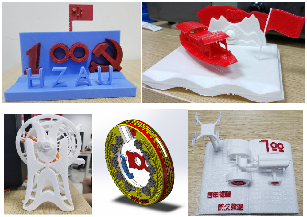 本次大赛旨在培养学生的创意创新意识、专业实践能力和团队合作精神,加强学生党史知识教育,厚植爱国主义情怀。学生灵活运用专业知识,将工学特色与党史学习相结合,充分展现创意创新设计、3D软件建模、3D打印实操技能等专业素质和能力。参赛作品依托红船精神、农业发展百年巨变、逐梦航天等题材,多维度展现中国共产党百年沧桑巨变以及当今中国的繁荣与富强,得到在场师生的一致认可与好评。