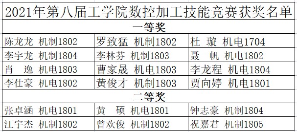 在机电工程训练中心举办第八届数控加工技能竞赛,6支队伍经过激烈角逐,最终机制1802的陈龙龙等12位同学获一等奖,机电1801的张卓涵等6位同学获二等奖。