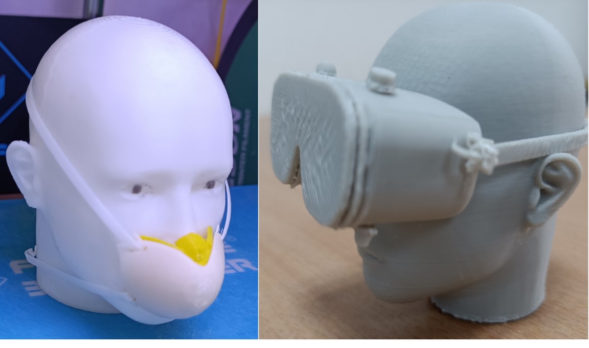 获奖作品“防疫口罩”和“防疫防护眼镜”