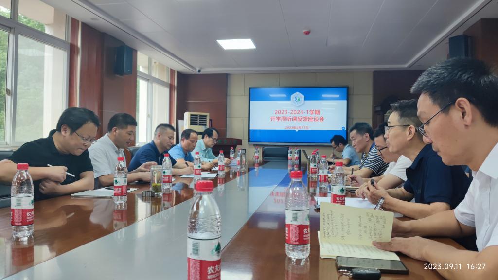 新学期开学听课反馈座谈会在工程楼A201会议室举行。学校副校长王建鸿,职能部门相关领导、学院领导、系主任以及被听课教师等近四十人参加了座谈会。会议由学院党委书记明庭庆主持。