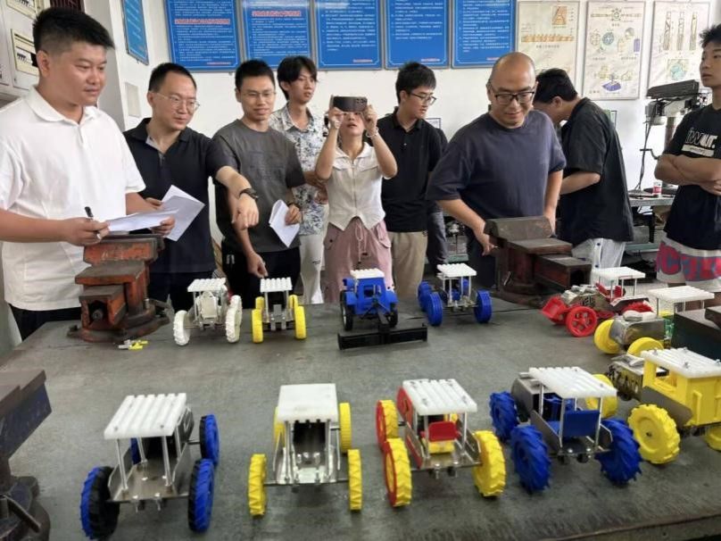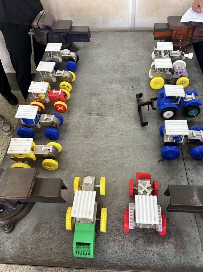 金工实训大赛之拖拉机模型制作比赛。比赛从拖拉机模型的创新设计、加工质量、组合装配等多方面评分,以确定奖项归属。